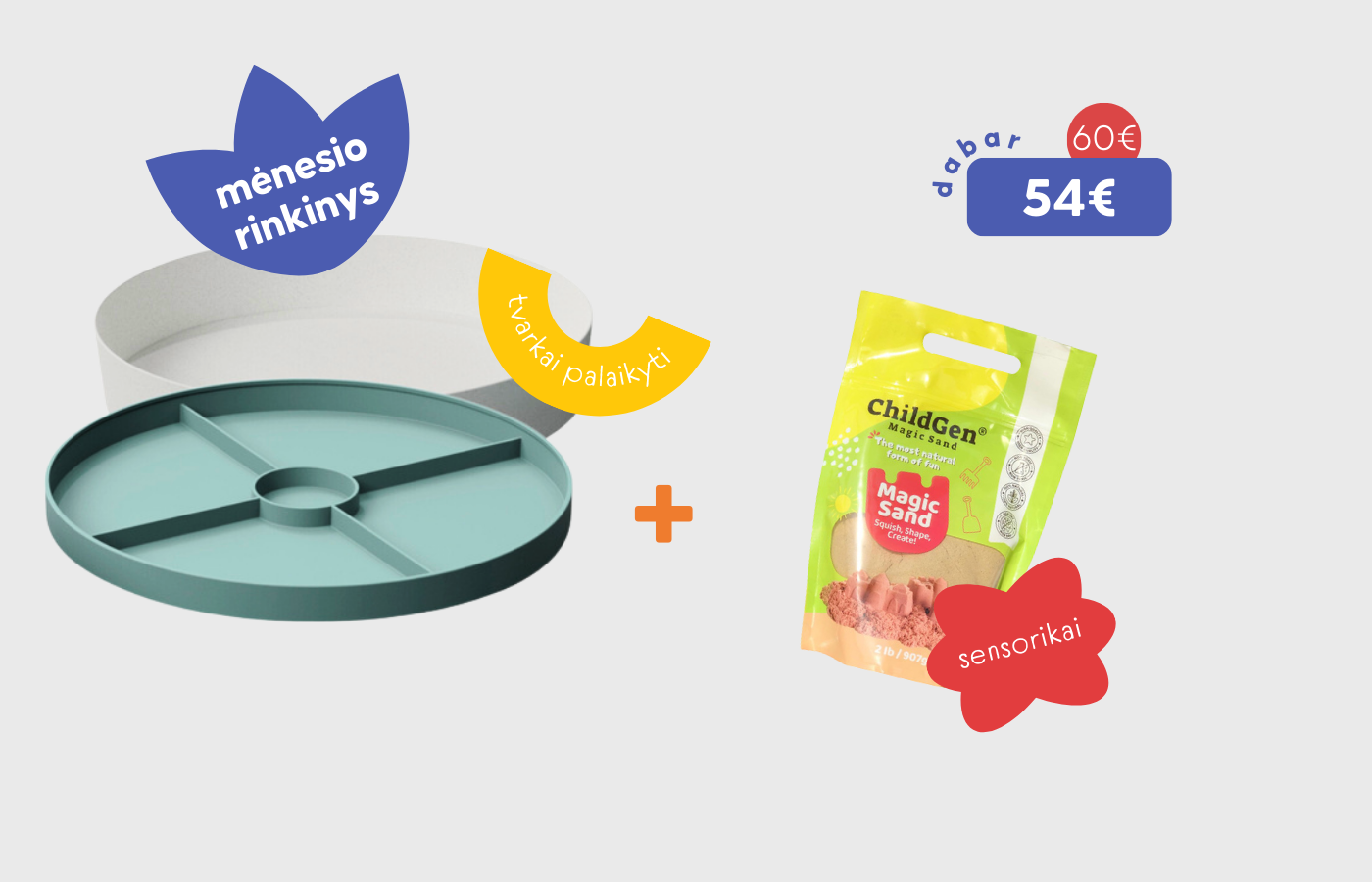 Padėklas su praktišku dangčiu visiems sensoriniams žaidimams.