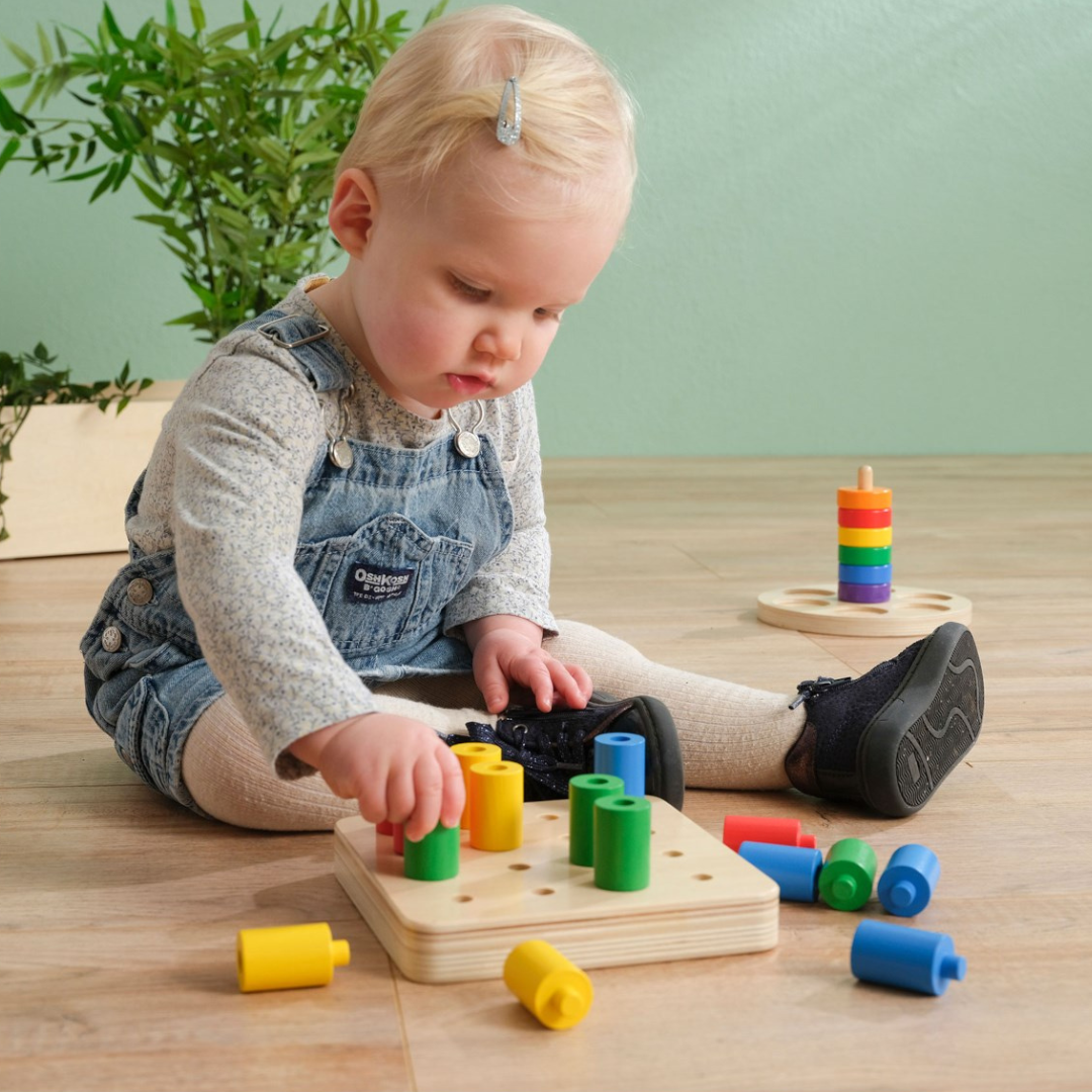 - Sensorika ir smulkioji motorika: vaikai praktikuoja tikslius judesius, įstatydami cilindrus į skylutes, lavina rankos-akies koordinaciją.