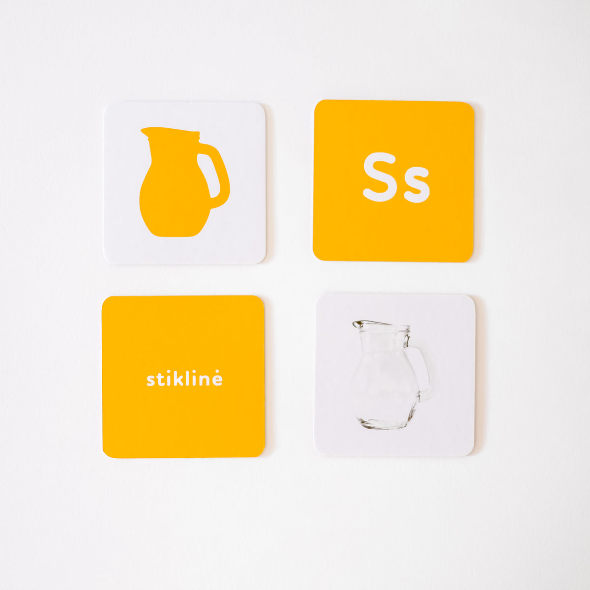 Kortelės sukurtos taip, kad būtų aktualios ir įdomios ilgai: pradedant nuo pažinties su objektais bei jų pavadinimais, vėliau mokantis pažinti raides - derinant nuotraukas su pirmomis raidėmis, žaidžiant atpažinimo žaidimus bei poruojant nuotraukas su šešėliais ir galiausiai - skaitant pilnus pavadinimus.