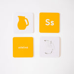 Objektai pateikiami realistiškose nuotraukose, o jų šešėliai idealiai atitinka originalų objektą, tad vaikams lengva atpažinti bei tikslu derinti objektus su šešėliais. Pirmosios raidės pateikiamos greta didžioji ir mažoji kartu, kad vaikai iškart matytų bei pažintų abu vieno garso simbolius. O pilni žodžiai parašyti mažosiomis, atsižvelgiant į tai, jog didžiuma skaitomos literatūros būtent taip rašoma, taigi vaikai iškart gali mokytis dažniausio skaitymo būdo.