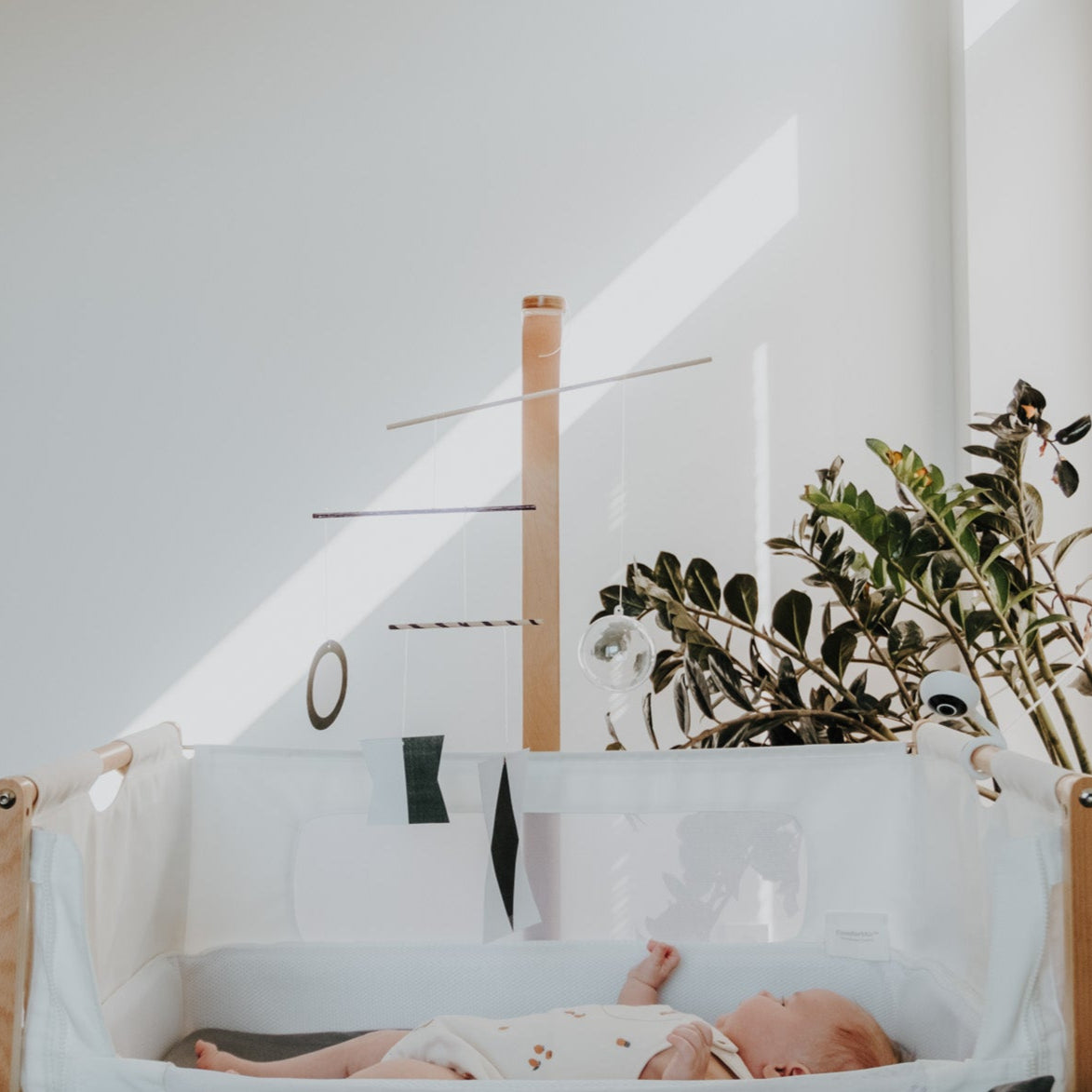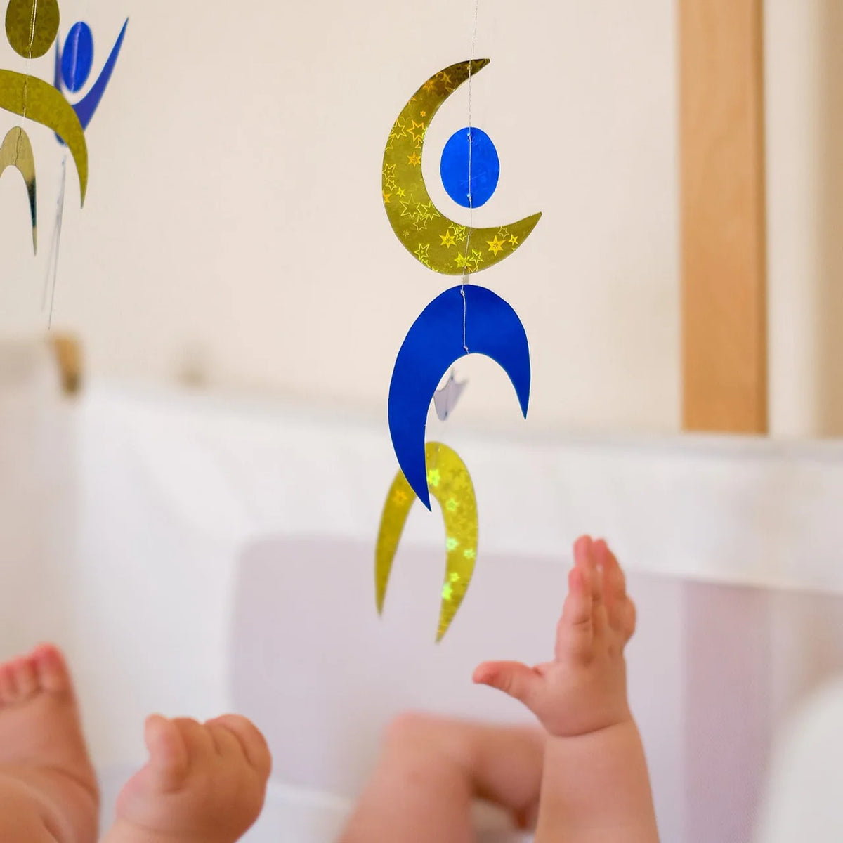 Kadangi regėjimas šiame etape vis dar vystosi, o matymas vis dar neryškus, ši karuselė yra kontrastinga, sudaryta iš lengvai atskiriamų formų. Kūdikis gali tyrinėti kontrastą ir stebėdamas ore kabančias formas lavinti gebėjimą sekti judančius objektus.