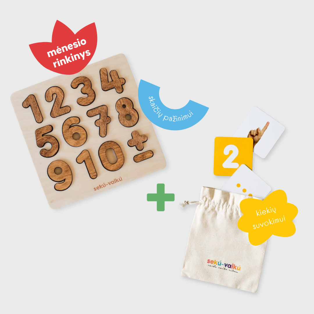 Priemones kūrėme matematikos jautrumo laikotarpiui atliepti, jos tinka tiek objektų kiekiui suvokti, tiek smulkiajai motorikai lavininti. Tai puikus būdas rankos ir akies koordinacijai lavinti, dėliojant dėlionės skaičiua bei bandant susieti kiekį su jo išraiška - skaičiumi, atpažįstant jų kontūrus dėlionėje ir prijungiant matematinius ženklus įvairiems veiksmams atlikti.