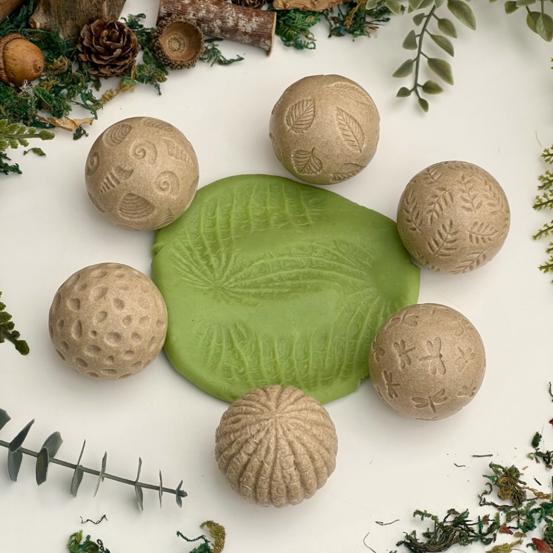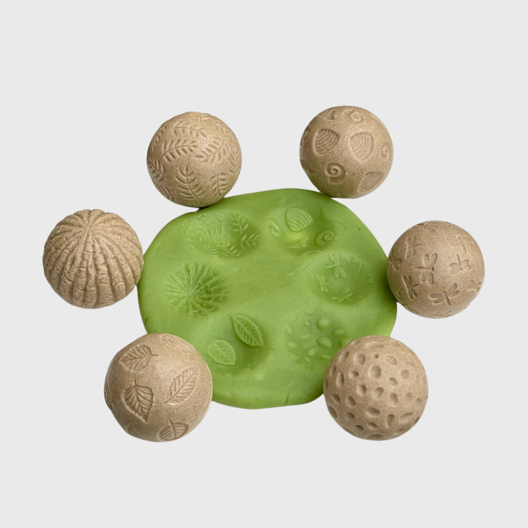 Tai 2 apvalių ritinėlių rinkinys, kurių paviršius atkartoja gamtoje randamus rašto ir faktūrų motyvus. Ritinėliai kviečia vaikus tyrinėti, spausti ir riedinti - skatindami smulkiosios motorikos vystymąsi ir suteikdami turtingą sensorinę patirtį.