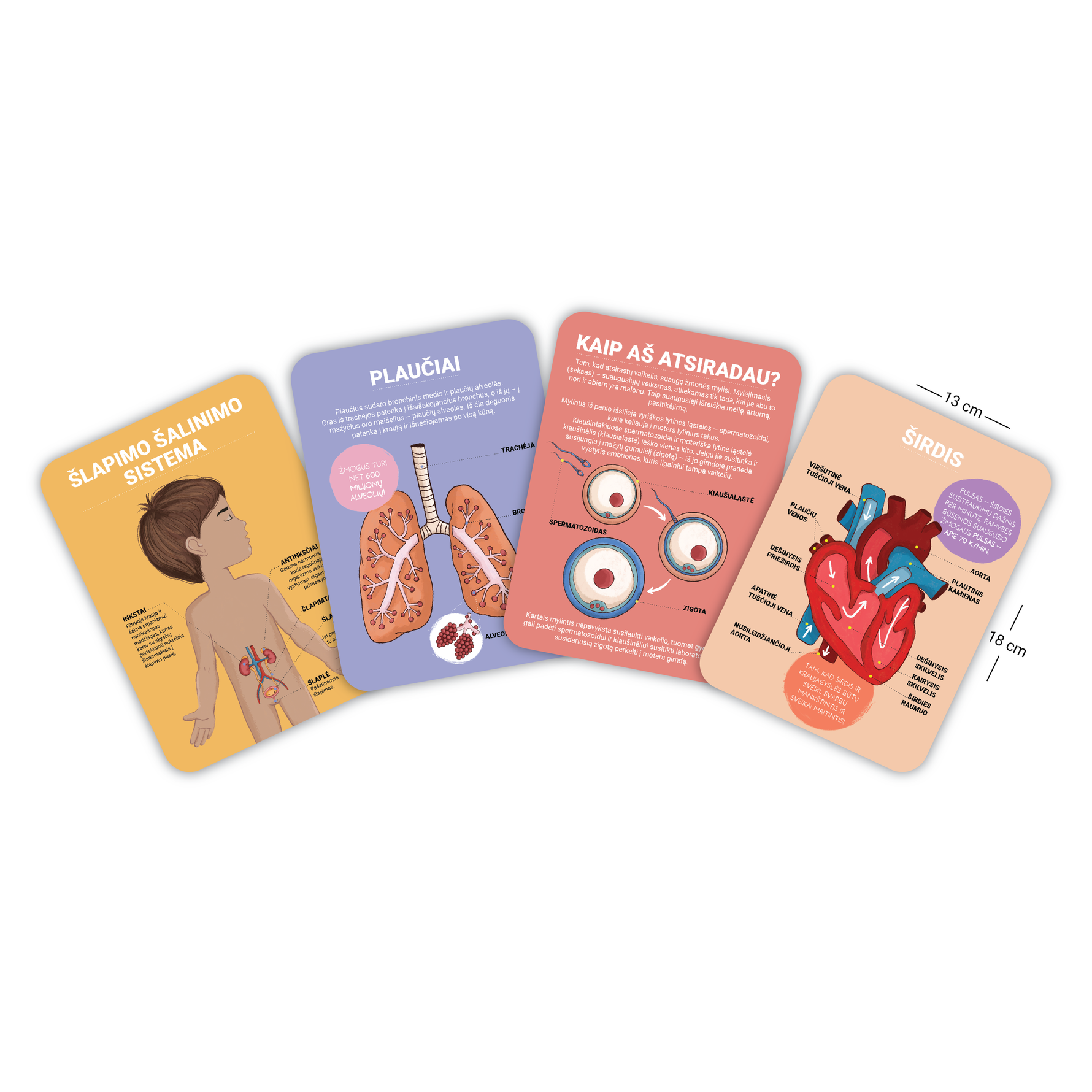 Kortelės padės vaiką supažindinti su žmogaus anatomija, suprasti savo kūną ir taps pagrindu svarbioms temoms apie vaikų atsiradimą, lytis ir toleranciją. Kortelės kurtos konsultuojantis su specialistais ir yra skirtos priešmokyklinio amžiaus vaikams bei pradinukams (tačiau įdomios visai šeimai!).