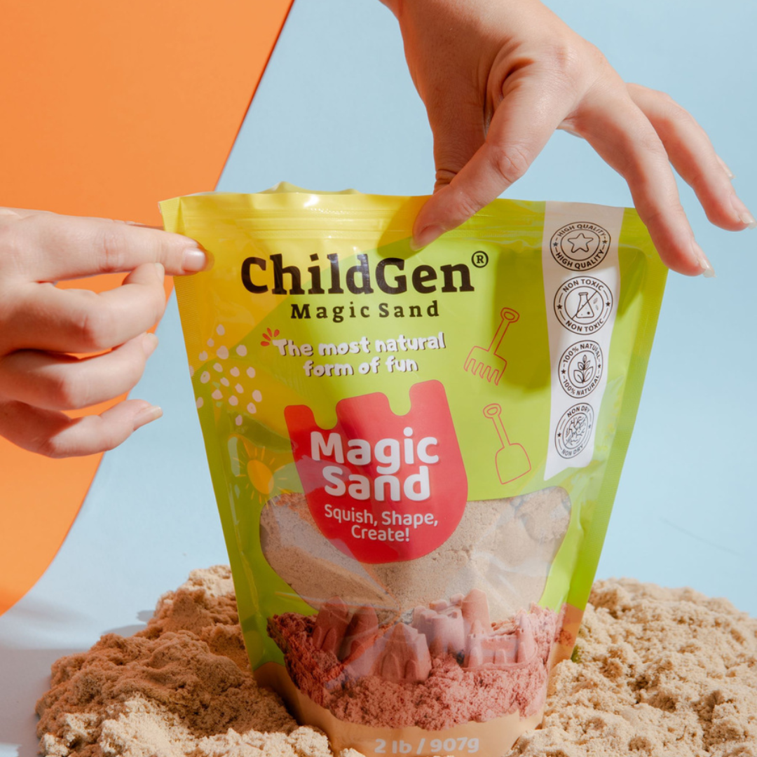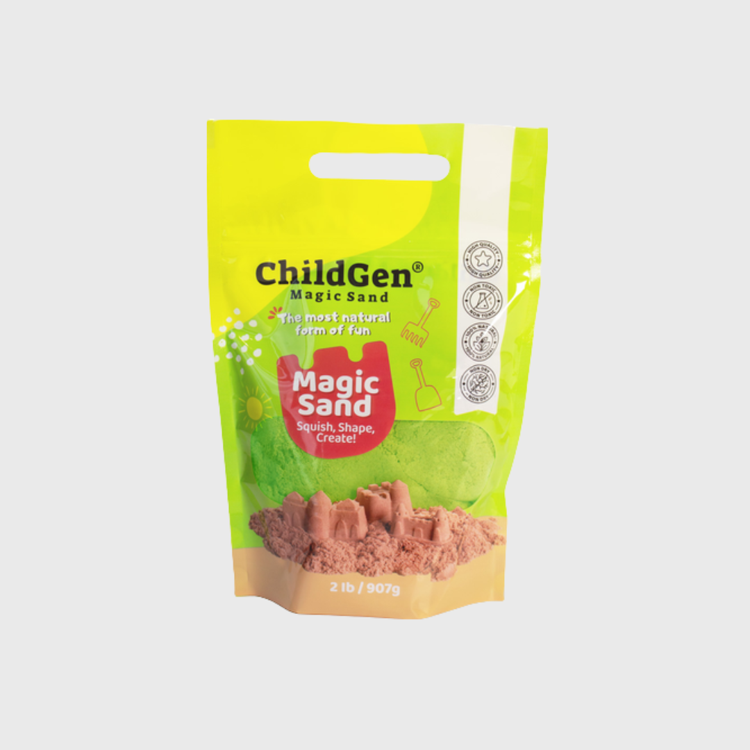 ChildGen Magical Sand – tai aukštos kokybės natūralus kinetinis smėlis, suteikiantis ne tik daugybę žaidimo galimybių, bet ir sensorinę, kūrybinę patirtį visai šeimai. Šis smėlis yra maloniai minkštas, lengvai formuojamas, su švelniu kvapu ir skatina sensorinį sužadinimą kiekvienam prisilietimui. Jis puikiai tinka lipdymui, minkymui, statyboms ar griovelių braižymui ir modeliavimo žaidimams – skatindamas tiek kūrybingumą, tiek sensorinius įgūdžius.