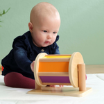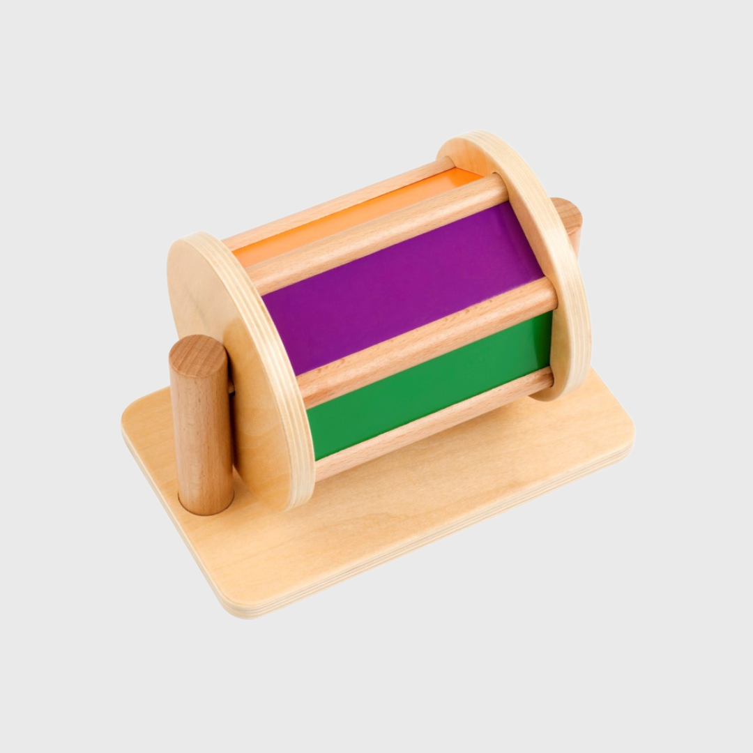 Šis sukamas būgnas gali tapti dėmesį patraukiančiu objektu kelti galvą, gulint ant pilvuko bei siekti rankyte jį pasukti. ~7-11 mėnesių kūdikių dėmesį patraukia priežasties-pasekmės ryšys, aktyviai lavėja rankos-akies koordinacija.