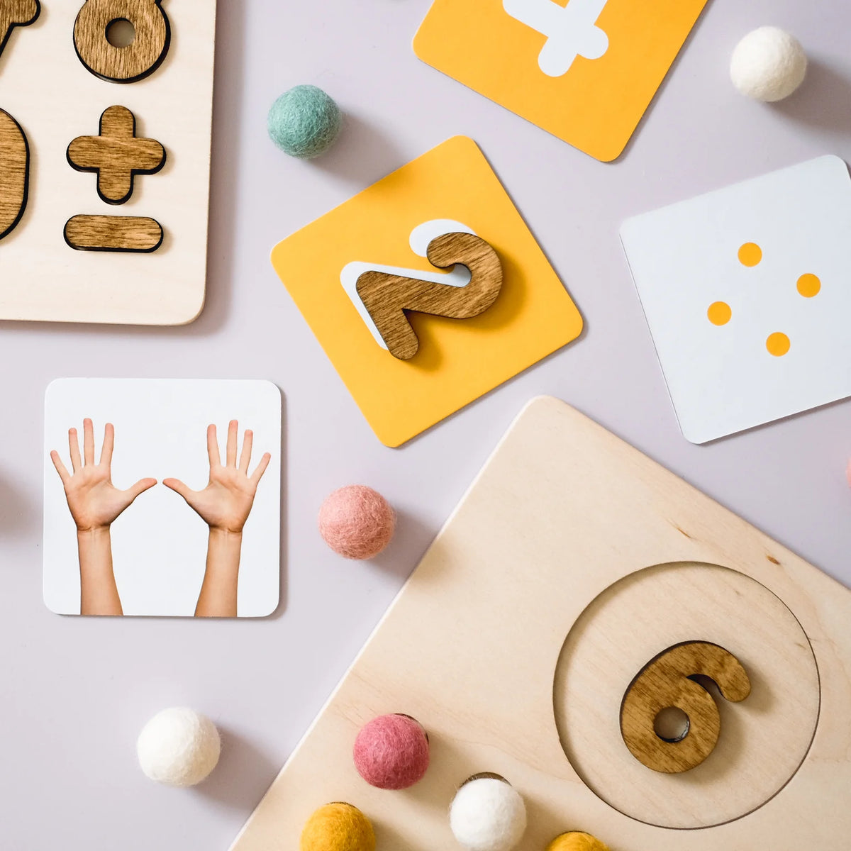 • dėlionę su skaičiais nuo 0 iki 10 bei matematiniais ženklais;