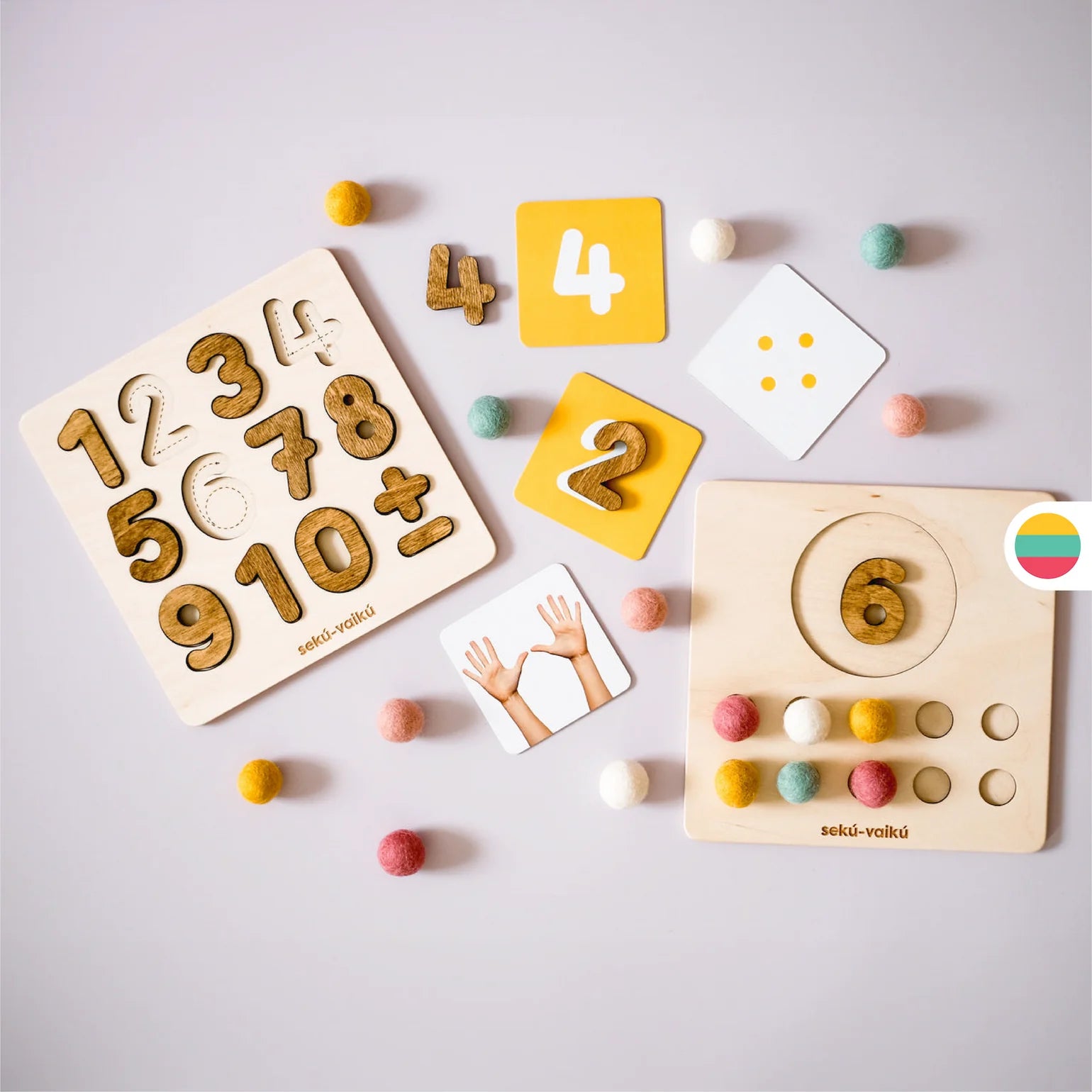 Skaičiavimo rinkinys - kortelės, lentelė, dėlionė ir vilnos kamuoliukai