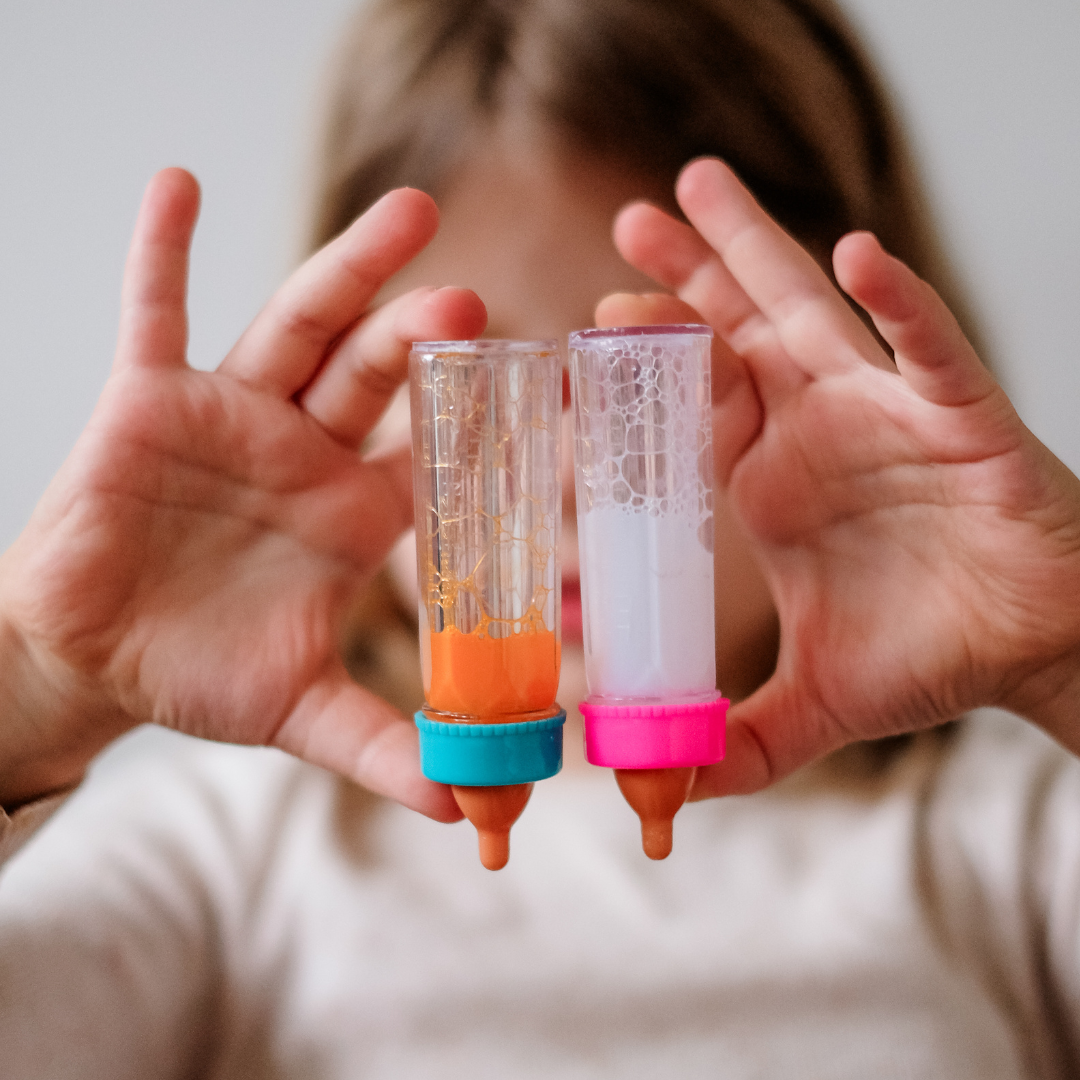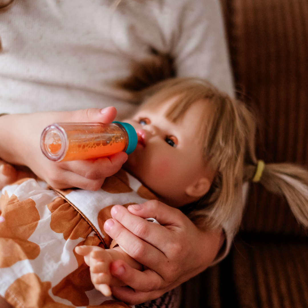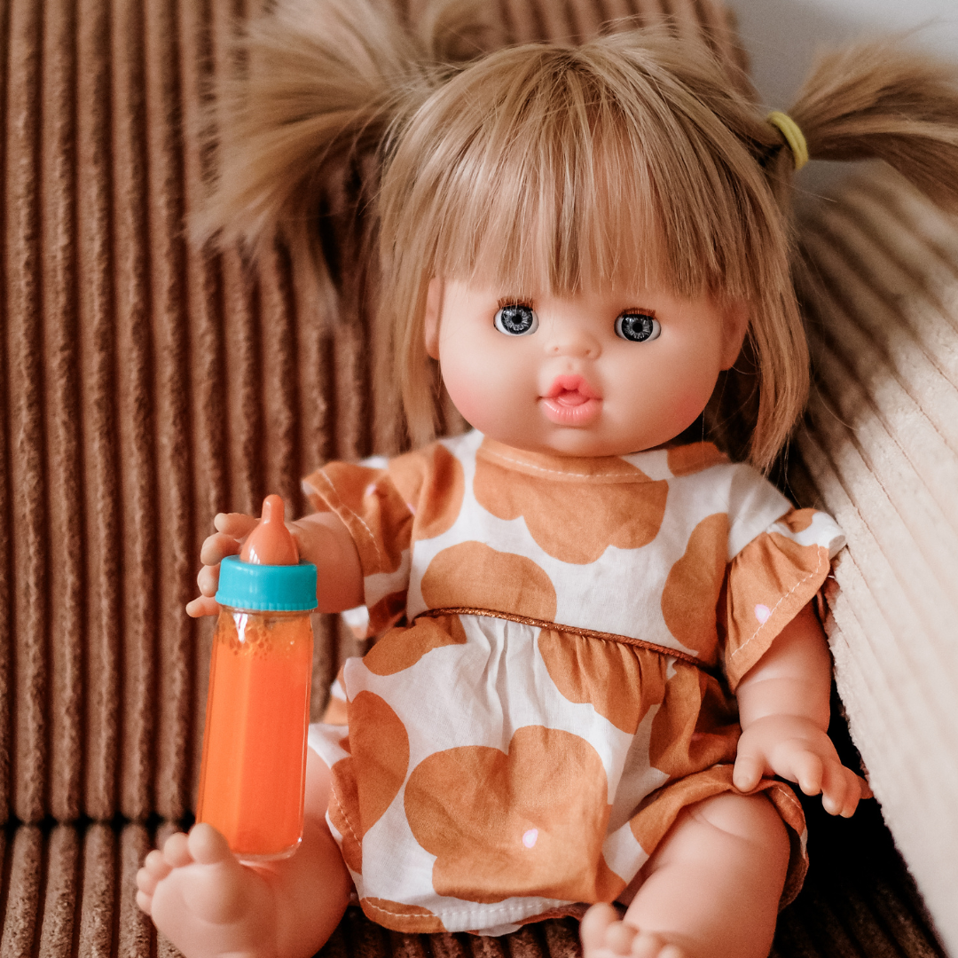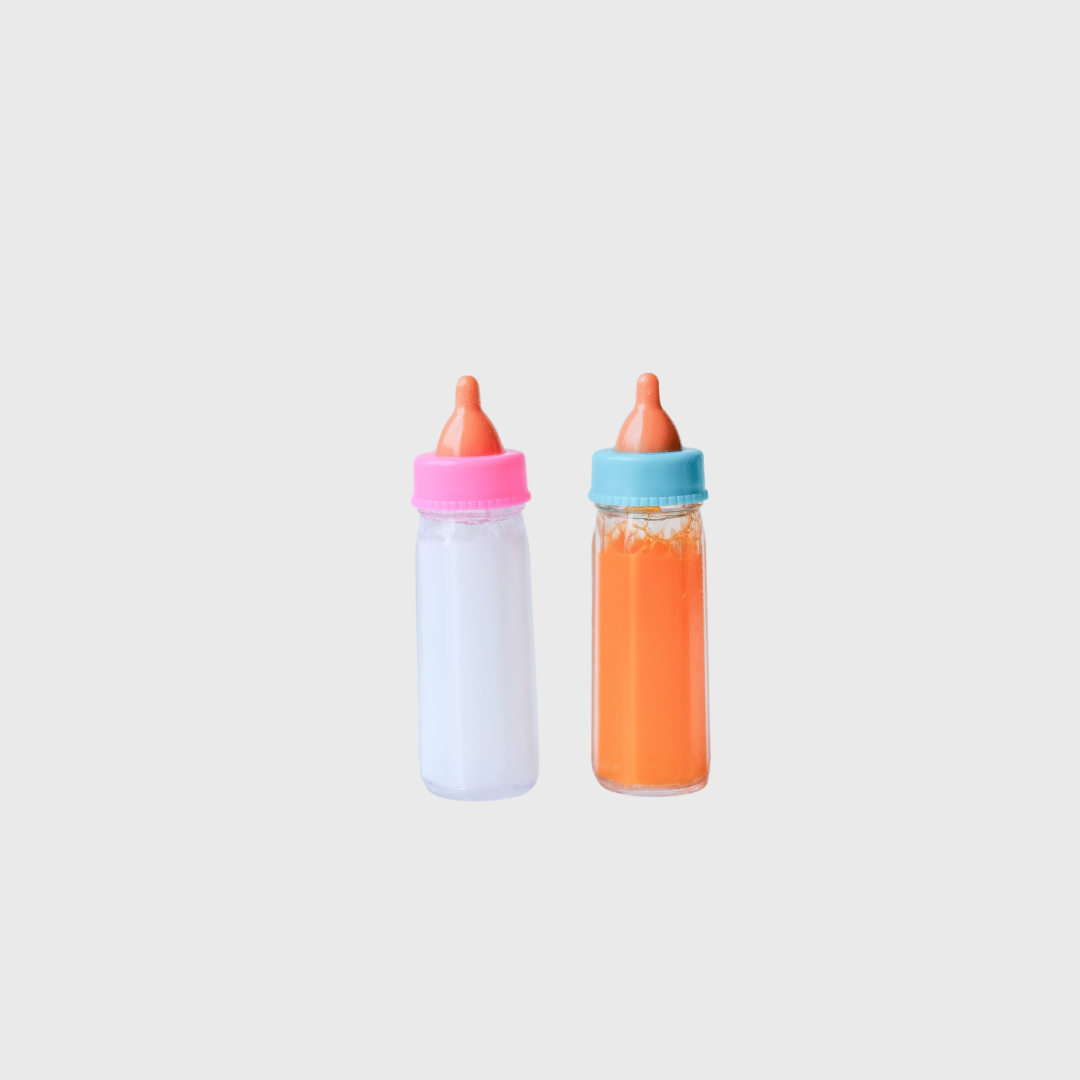 Unit price perMagical doll bottles with milk and juice - turn them upside down and the doll will "drink" its drink.