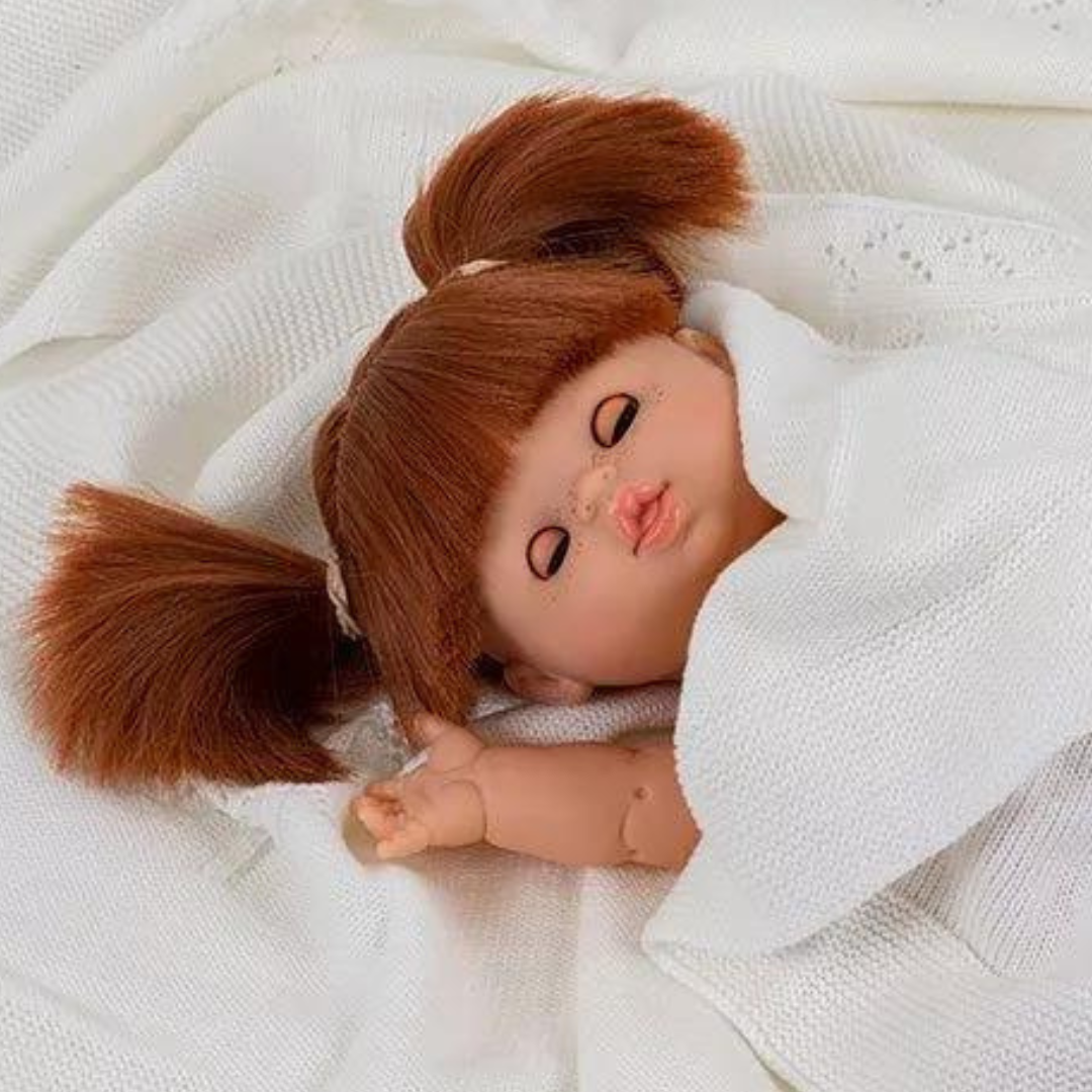 Unit price perMinikane 34 cm. The hard-bodied doll has a gentle vanilla scent and can move its arms and legs, sit or lie down. This doll has charming eyelashes and closes its eyes when laid down. The hair can be combed, pinned up and tied.