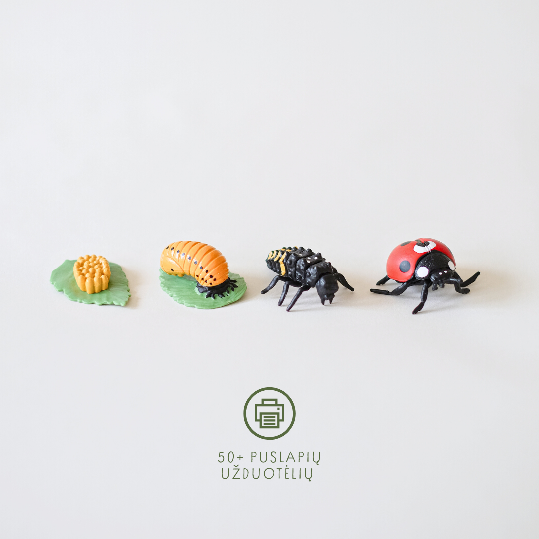 realistic figures depicting the main stages of an insect's life cycle AND a set of 55+ printable activities.