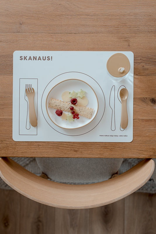 You can start introducing the tray quite early just by playing – arrange the children's dishes and model the process together. As the little one grows, move the process to the table – you can use the tray to set the table or protect it from various stains.