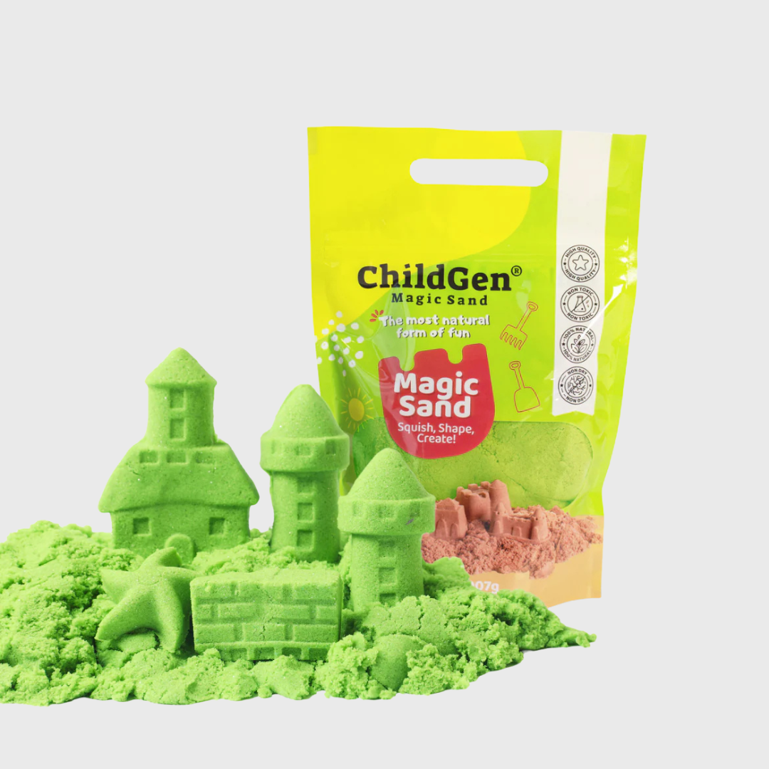 ChildGen Magical Sand – tai aukštos kokybės natūralus kinetinis smėlis, suteikiantis ne tik daugybę žaidimo galimybių, bet ir sensorinę, kūrybinę patirtį visai šeimai. Šis smėlis yra maloniai minkštas, lengvai formuojamas, su švelniu kvapu ir skatina sensorinį sužadinimą kiekvienam prisilietimui.