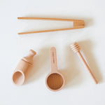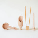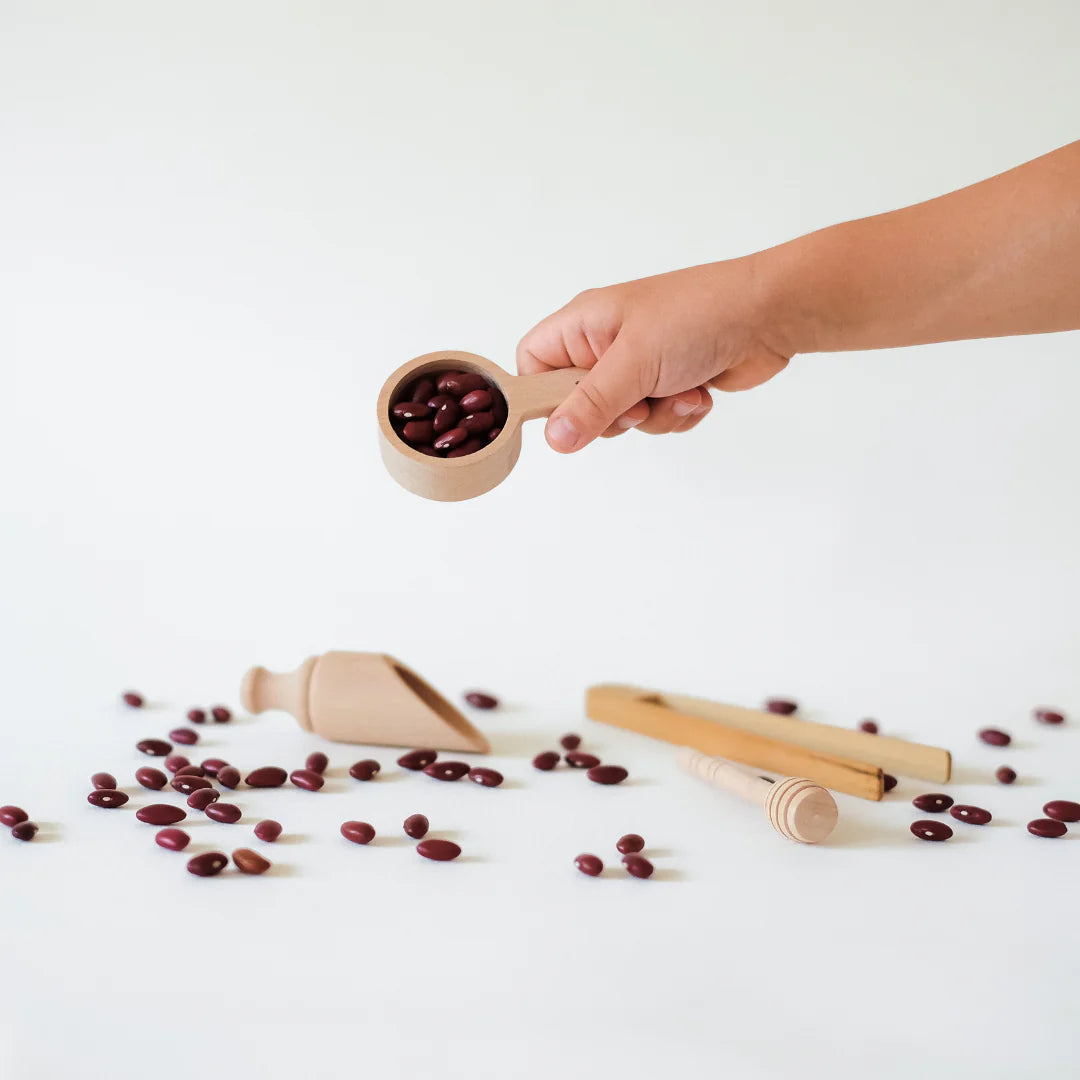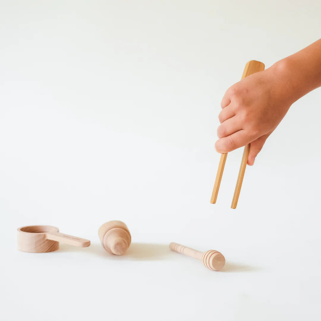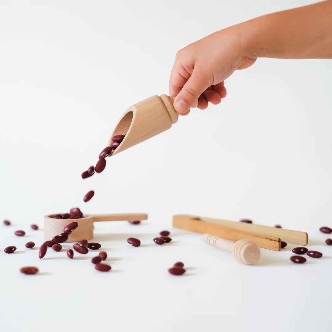 Sensory games give children the opportunity to explore and learn through touch, and with the right tools, even more possibilities are created: they develop spooning skills (picking up and transferring), learn about differences in volume, and develop their pincer grip with both their fingers and tools.