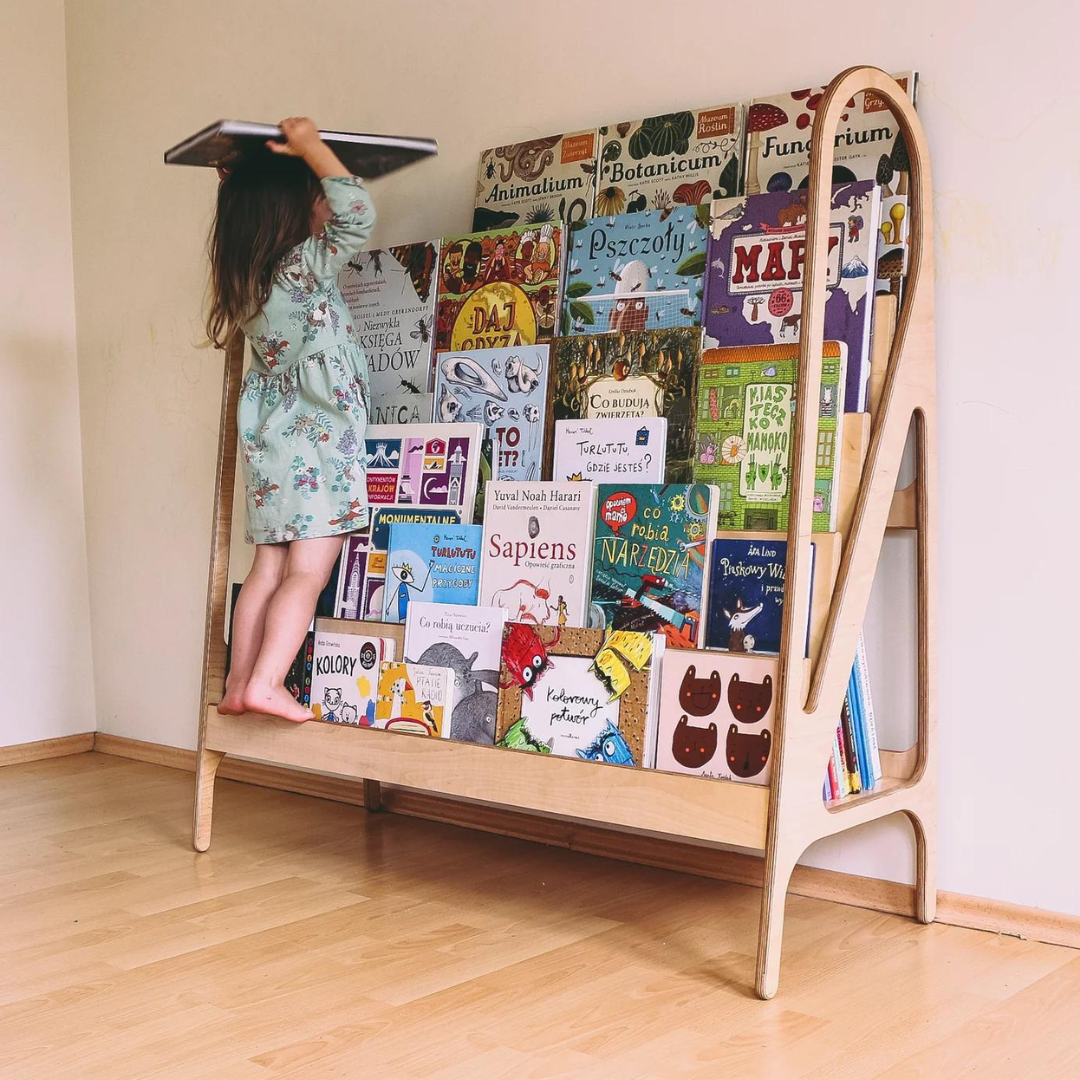Unit price perMost children are initially attracted to books by their pictures and expressive covers, but when books are stored on traditional shelves, this important part of the book remains hidden. That is why we recommend choosing Montessori-inspired shelves, where books are stored with their covers facing forward.