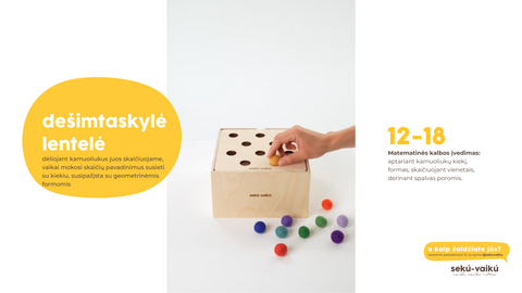 Designed to explore and understand numbers: recognizing quantities, matching them with symbols, learning first mathematical signs, and practicing actions independently while self-checking. A pair of tweezers is included in the box.