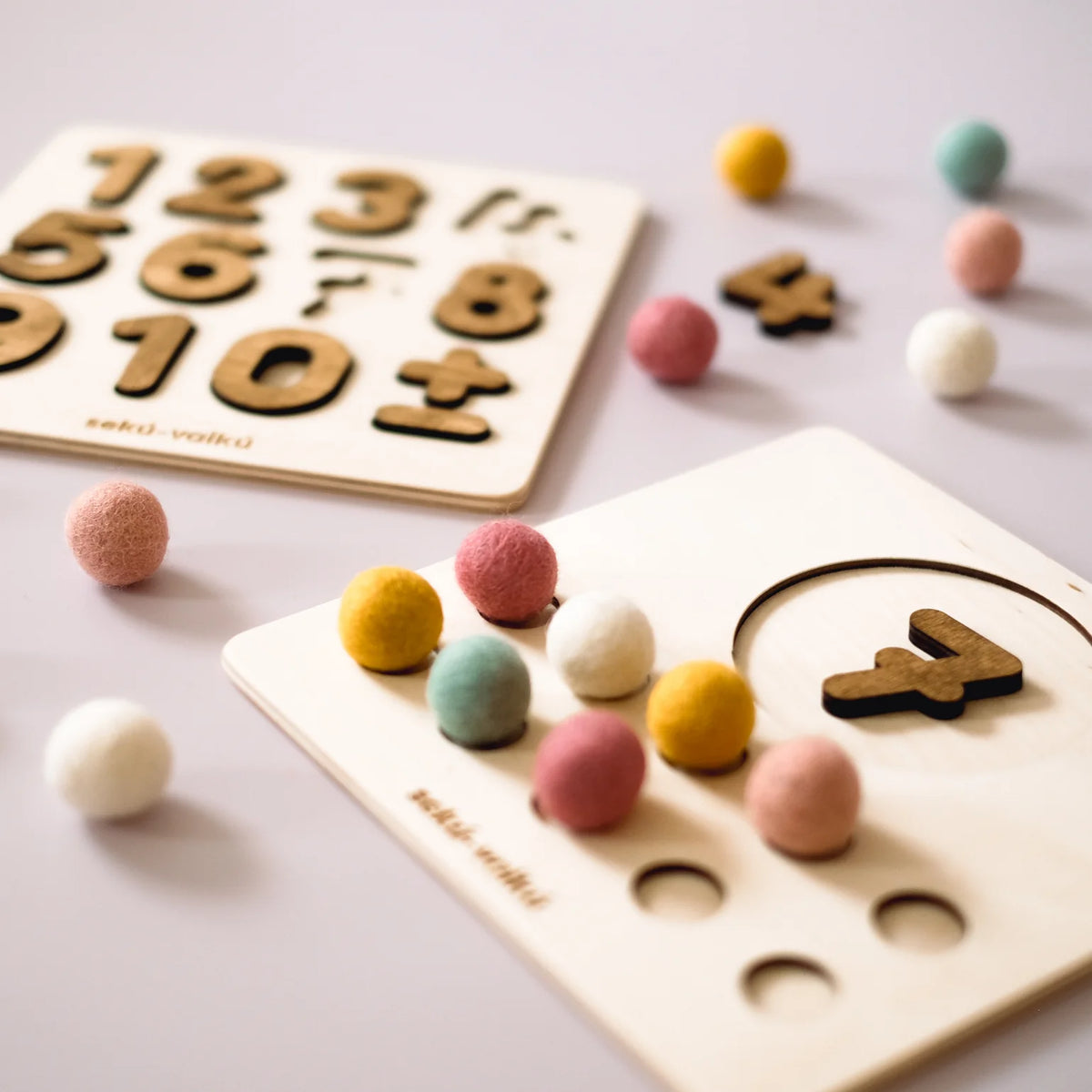 Skaičiavimo rinkinys - lentelė, dėlionė ir vilnos kamuoliukai