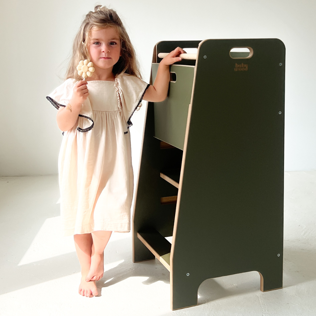 Ilgai ieškojome Montessori bokštelio, kuris būtų draugiškas kaina, tačiau bekompromisis savo tvirtumu bei saugumu. Ir pagaliau radome. Šis bokštelis yra kompaktiškas, tačiau pakankamai tvirtas ir stabilus.
